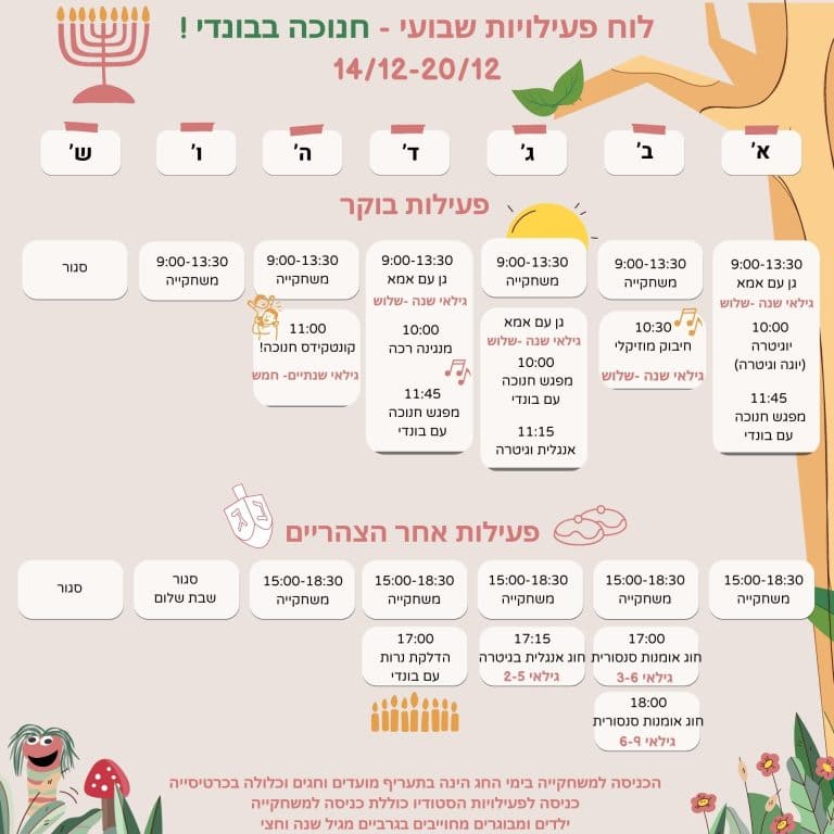 כולל: משחקייה + חוג משתנה + מפגש עם בונדי